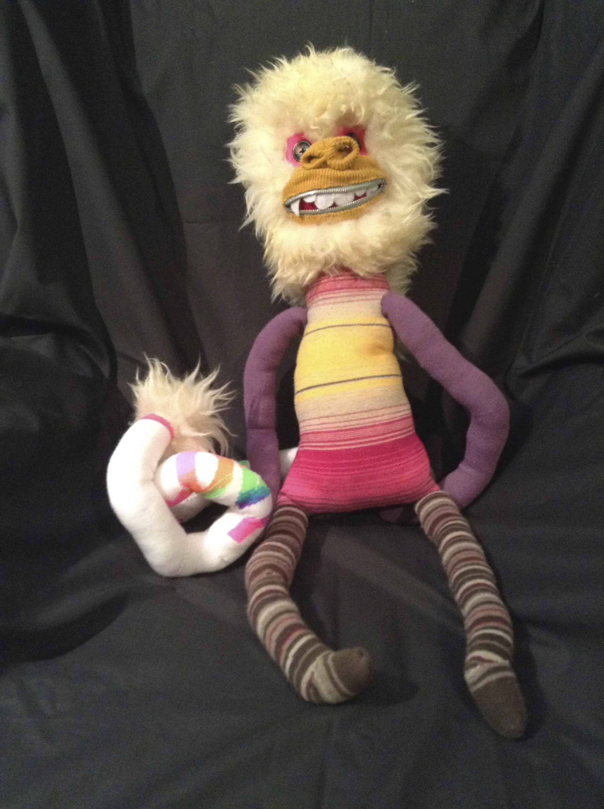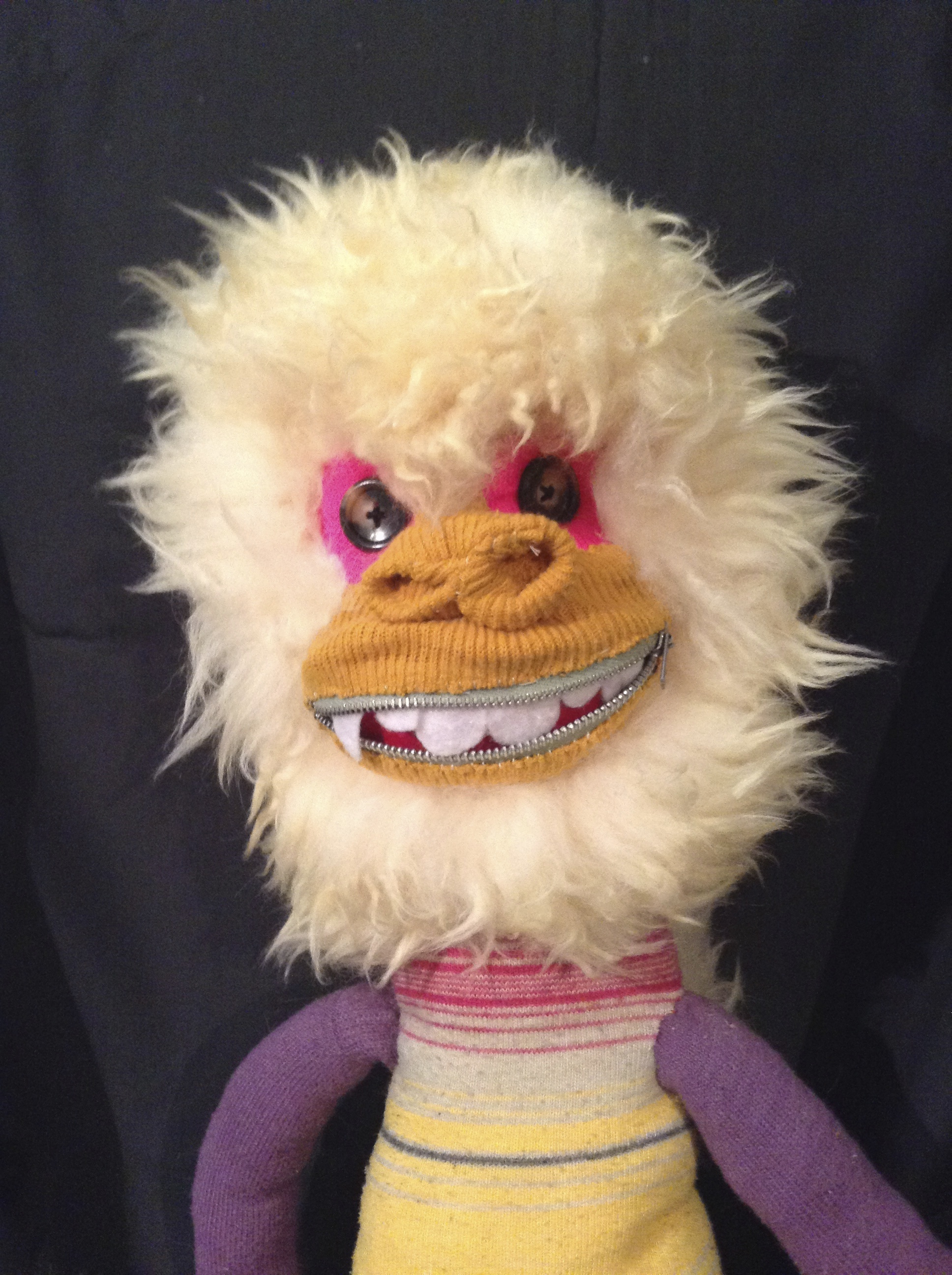 Up-cycled Socks, Felt, Buttons, Zipper and Hypo-allergenic Polyester Filling
