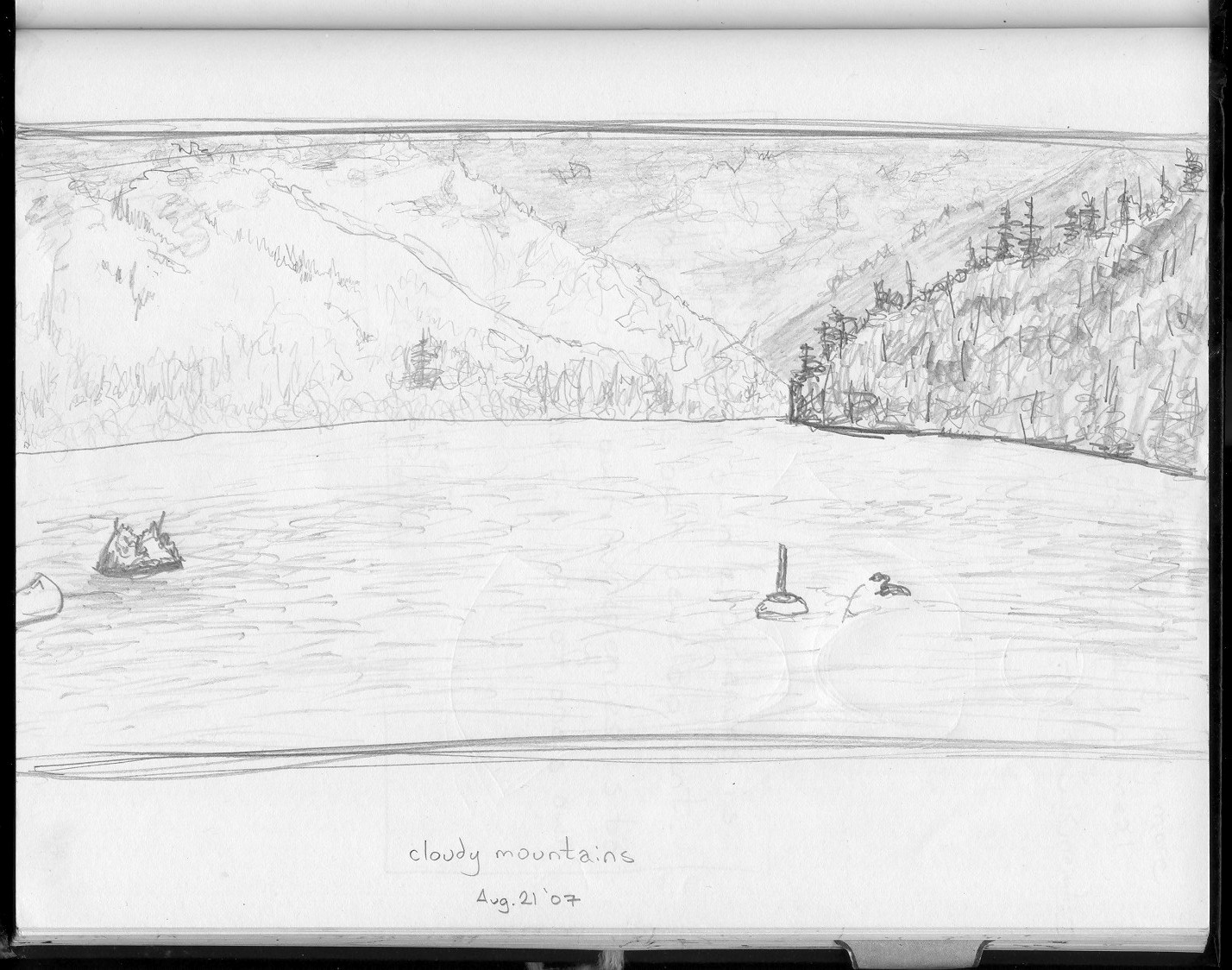 Drawn on a camping trip to Chilliwack Lake in the hills near our home.