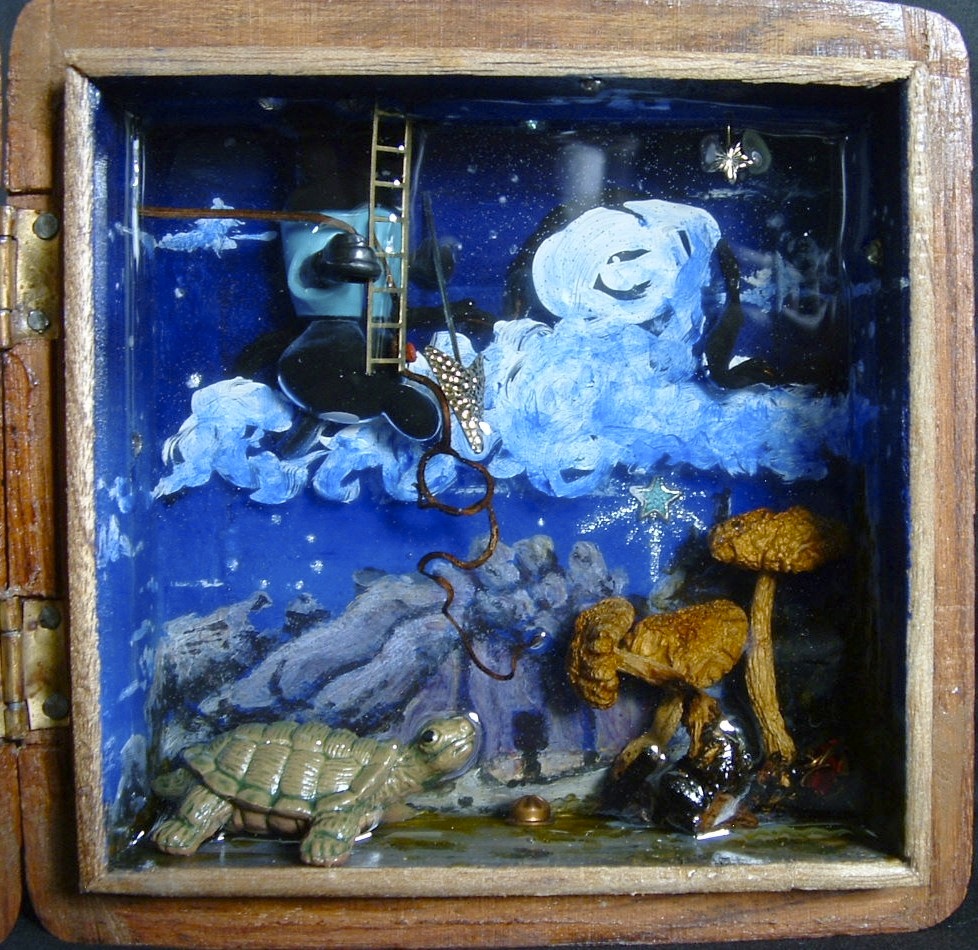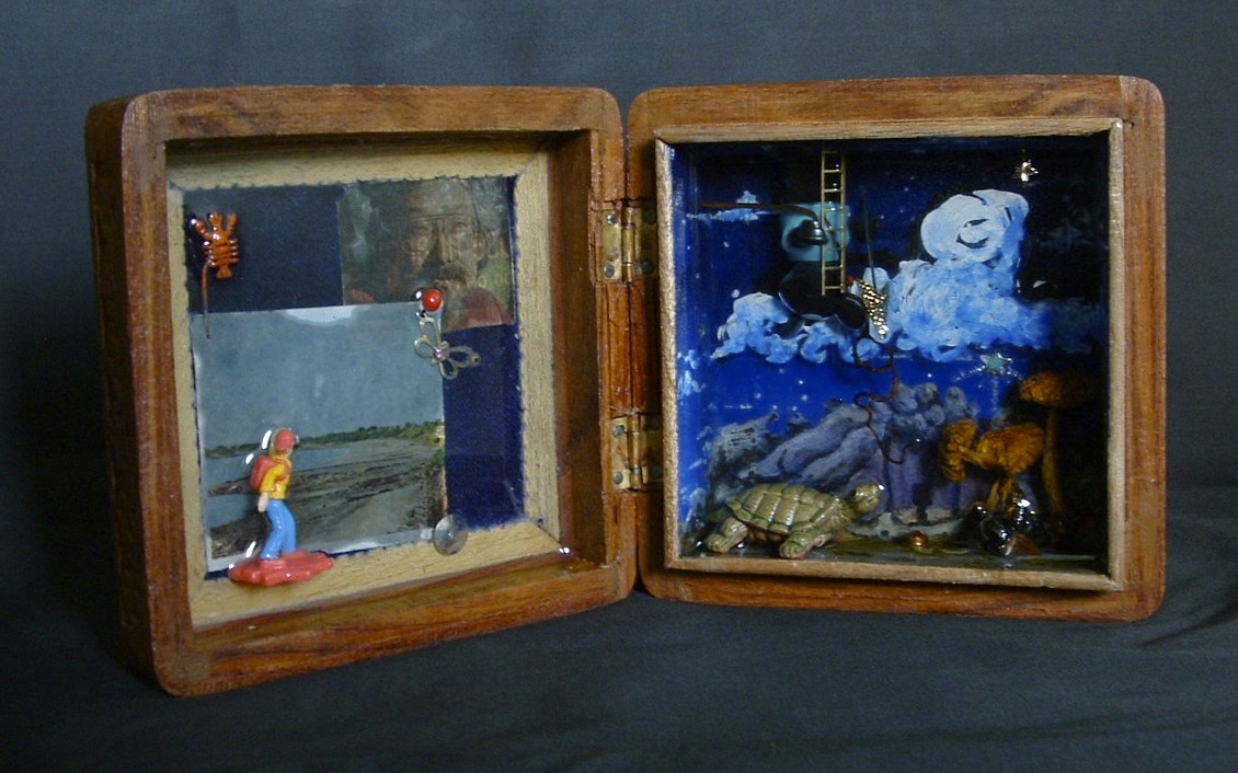 Acrylic, Collage and Resin in Found Teak Box